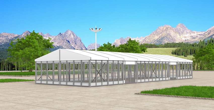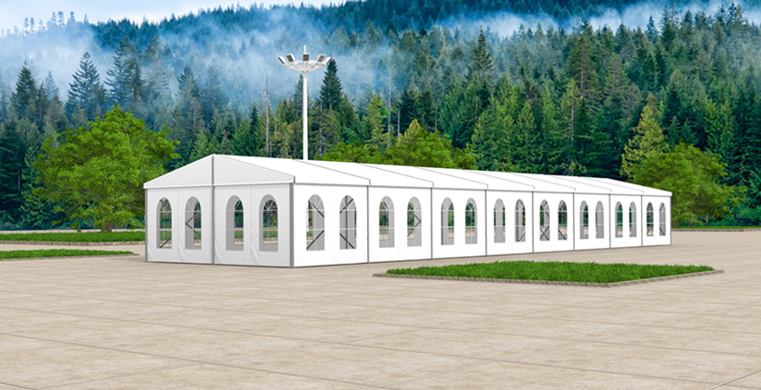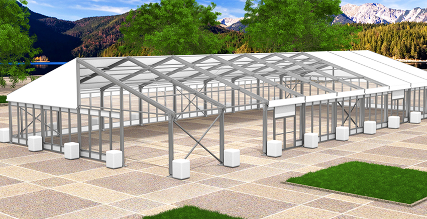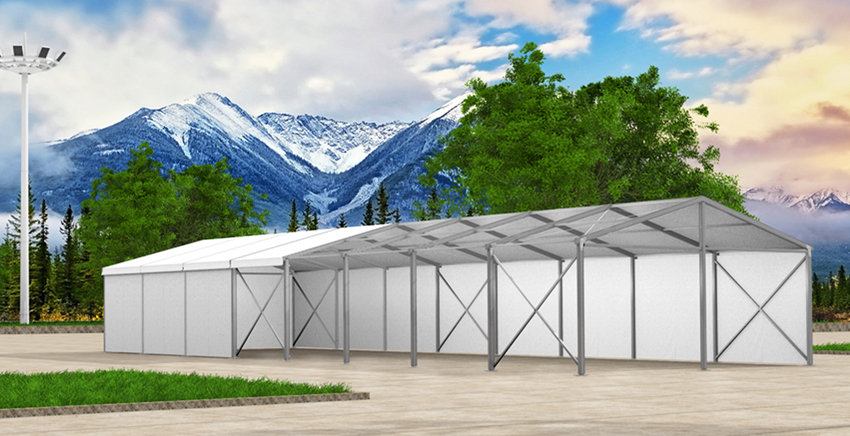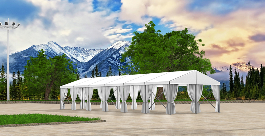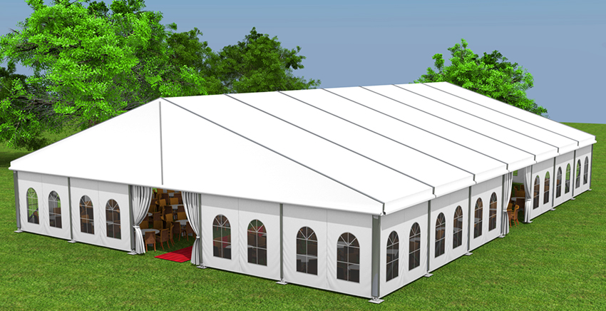 屋脊篷房系列品種繁多,提供從6米到50米的多種跨度。屋脊篷房采用模塊化設(shè)計,篷房長度可按3米或者5米的倍數(shù)延長。屋脊篷房采用高強度鋁合金型材(6061-T6)作為主框架,外圍采用PVC刀刮涂層布做圍擋。此外,屋脊篷房高適應(yīng)性的特點,可以讓它融入各種建筑特色,也可以與同類產(chǎn)品,如:如尖頂篷房、多邊型篷房等組合使用。
