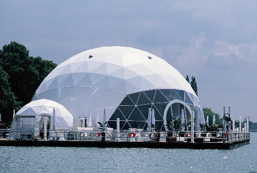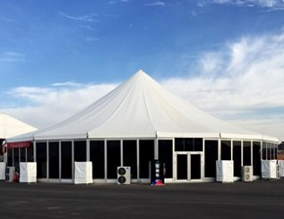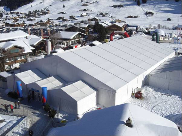 中國建筑的坡度,傳統上屋頂從南往北是逐漸減緩的。南方屋頂高而尖,原因是降水量大,氣候炎熱,高而尖的屋頂既利于排水,又利于通風散熱。北方角度放緩乃至逐漸變平,則有利于保暖。而高山篷房設計中,既有尖頂篷房挑高空間,強化設計感和利用率;也有平頂篷房別出心裁,做出新意。高山平頂篷房采用8°仰角,利用先進的漲緊系統取代了雙層吹氣設計,既達到安全使用的目的,又可滿足客戶要求。平頂篷房用新型材料做平行布幔,加上圍欄,整體形成平頂效果,給人以視覺上的改變。輔以多樣的采暖模塊,在任意溫度下都能保證篷房內部和煦如春。