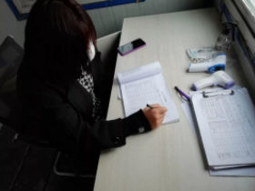 復工后,對進出廠內人員測量體溫,進行健康詢問并登記在冊。
