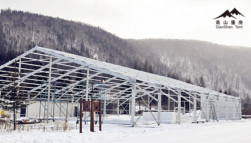 作為篷房企業,高山篷房具備冬季移動建筑豐富的設計施工經驗,同時陸續克服了凍土施工、結構強化、篷布安裝、防雪防凍、模塊配套等技術難題,成功制出雪地篷房系列產品。