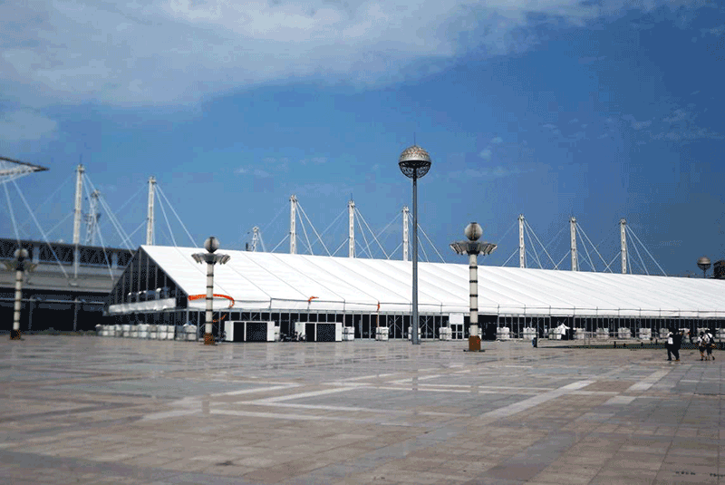 不挑地—— 篷房建筑地基簡單,只需一塊平地即可建設,不需要進行復雜的地基施工。同時因為施工時間短,篷房主體和配套設備都是工廠化制造,現場組裝,不需要塔吊、腳手架和海量的土木運輸,具備低噪音不擾民等特點。