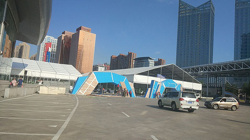 在由高山搭建的4座篷房內,為期六天的哈洽會圓滿落下帷幕,但,高山拆裝團隊的工作尚未結束——展覽用過的篷房需盡快拆裝,轉運到東廣場用于科技展覽。
