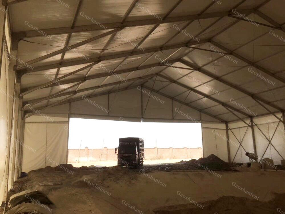 因此,高山篷房在充分了解客戶需求與當(dāng)?shù)貤l件的前提下,設(shè)立一座3000平方人字形篷房。