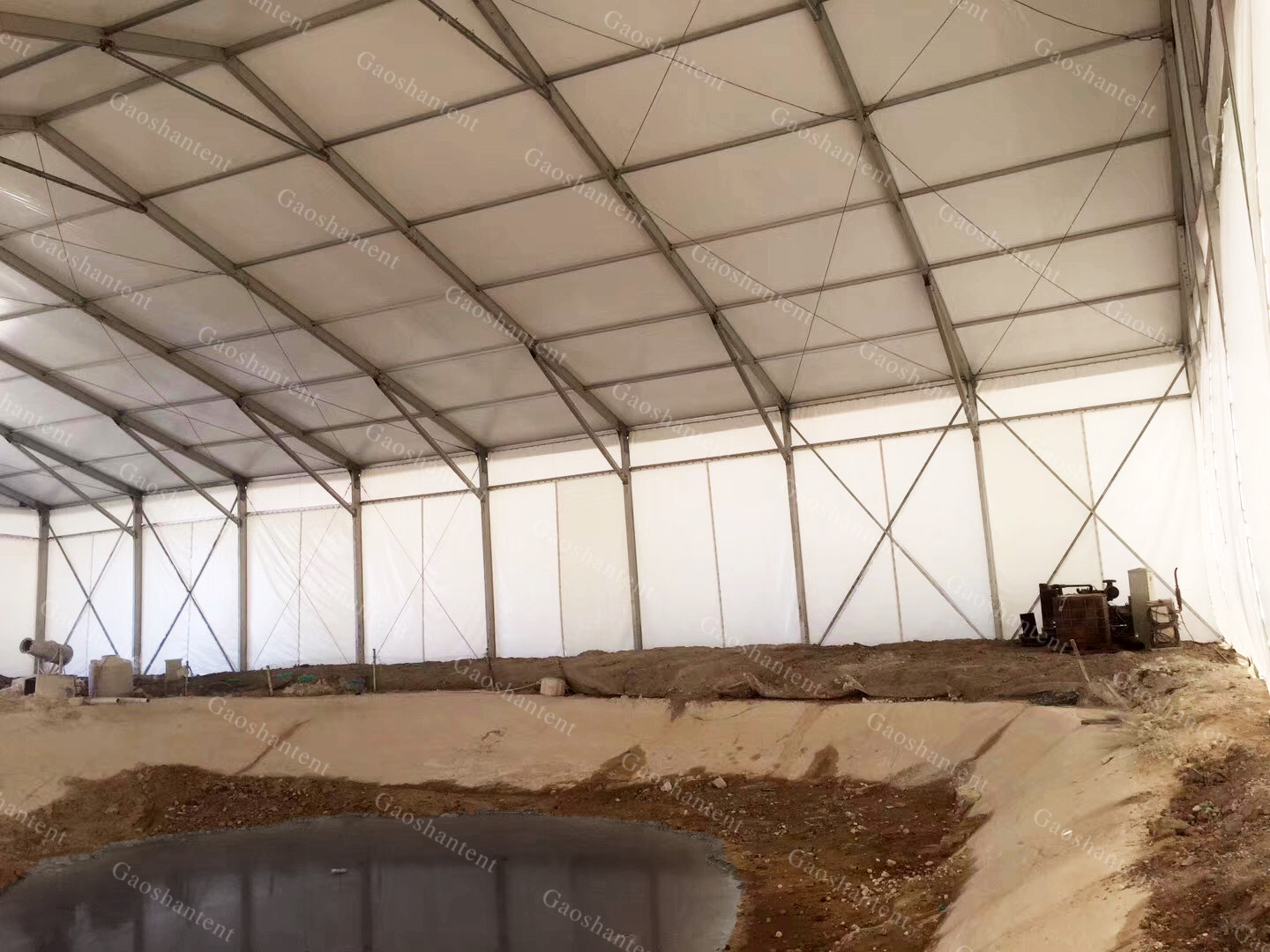 除此之外,考慮到垃圾填埋設(shè)備進場等問題,高山特對篷房進行了加高設(shè)計,將篷房加高12.5米,方便各種大型機器的進出及作業(yè)。