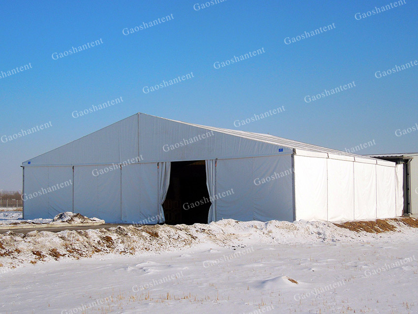 3防風防雪:對于工礦類企業來說,篷房使用期限較長,基本都要跨越四季,像山西、內蒙等地區的冬季,常會出現大風、寒潮、暴雪等極端天氣。而篷房可對風雪寒潮進行特別加固,采用的加強鋁材和篷布,可抗風10級,抗50cm厚的雪載,B1級防火,能夠很好地抵御極端天氣的考驗。