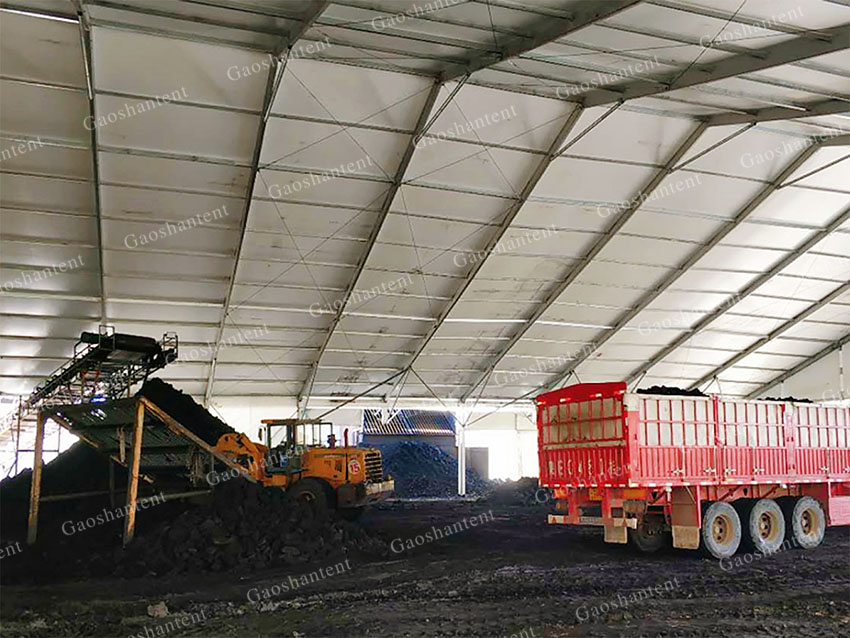 6用防腐蝕;眾周知,煤因為含有大量硫成分及其生產加工中涉及的其他化學物質,對于鋼鐵腐蝕非常明顯,傳統的密閉設施,往往短時間內就生銹、損壞,直接影響了企業的利潤水平和正常生產,篷房采用的是高耐腐蝕的篷布及高強度鋁型材,綜合使用壽命可達15-20年,節省大量經濟成本。